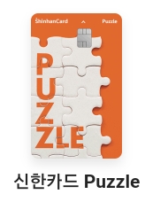 - 신한카드 Puzzle 기본 적립 서비스(기본적립, 간편결제 추가 적립, 선택 서비스팩 추가 적립)는 전월 이용금액 조건 및 적립 한도 없이 적립서비스가 제공됩니다.