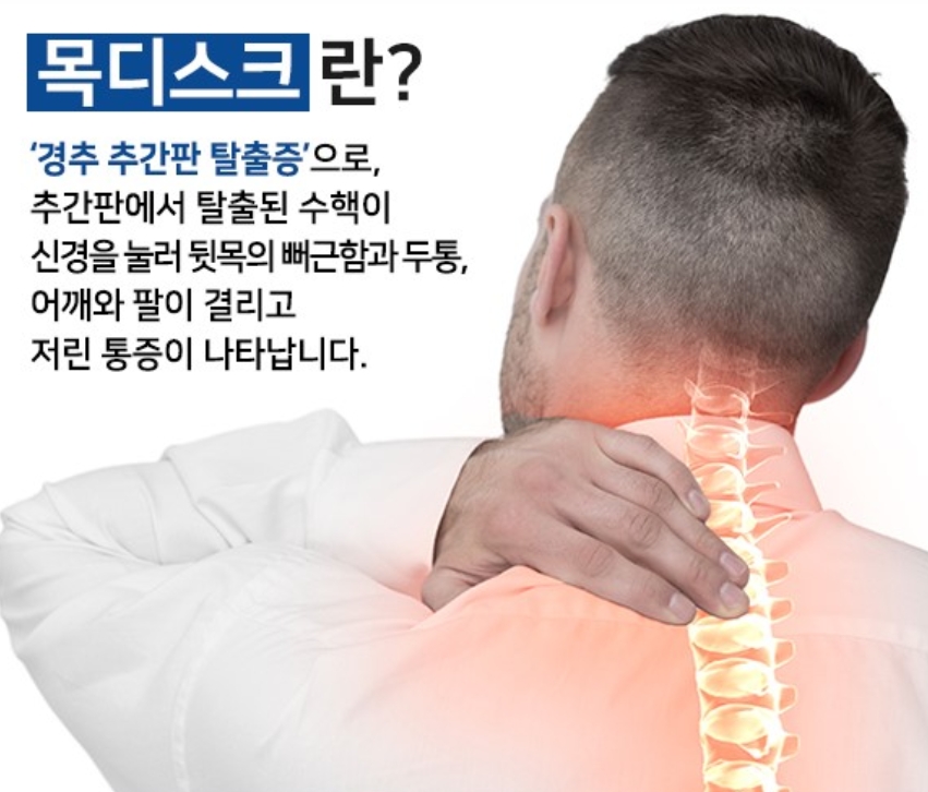 목디스크 또한 현대인이 많이 겪고 있는 질환중 하나입니다. 허리디스크나 목디스크는 일상생활을 힘들게 하고 몸에서 뻐근함과 통증이 느껴진다면 몸도 더욱 피곤하게 느껴지고 힘들게 됩니다. 이러한 디스크들은 일상생활에서 굉장히 걸리기가 쉽기 때문에 항상 조심해야 하는 질환 중 하나입니다.