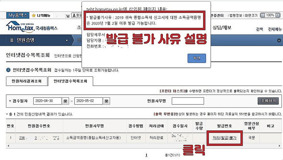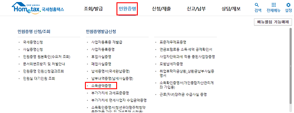 소득금액증명원 인터넷발급 방법 - 홈택스