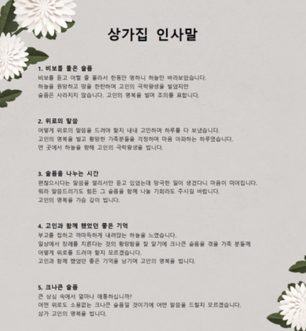 상가집 인사말 조문 위로말