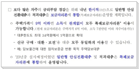 특례 보금자리론은 금리 상승으로 인해 서민분들 및 주택 실수요자들의 부담을 줄이기 위해 만들어진 정책지원으로 여러분들의 가계부채 부담을 줄여주기 위해 만든 제도입니다.
