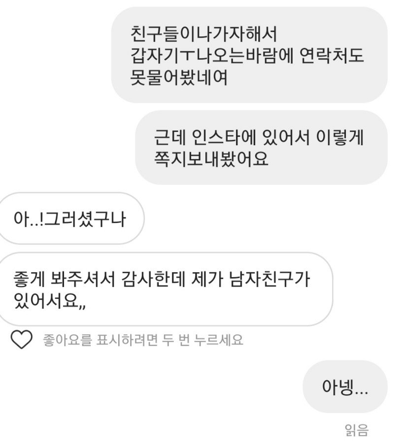 인스타 디엠을 보내고 상대방이 내가 보낸 디엠을 읽으면 메시지 아래에 '읽음' 표시를 통해 상대방이 메시지를 읽었다는 것을 나타내 줍니다.