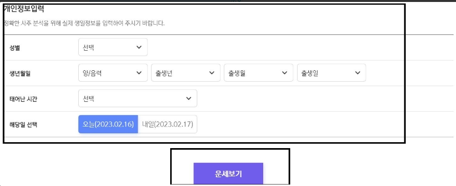 월운세는 성별, 생년월일 ( 음력인지 양력인지 정확히 입력하시기 바랍니다.), 출생일 입력하여 주세요. 그리고 태어난 시간 그리고 해당일을 선택하여 주세요. 그다음 운세보기 클릭을 해주세요.