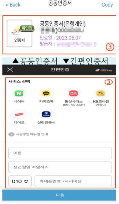 • 간편인증 로그인 or 공동인증서 로그인 버튼을 클릭해서 로그인합니다.