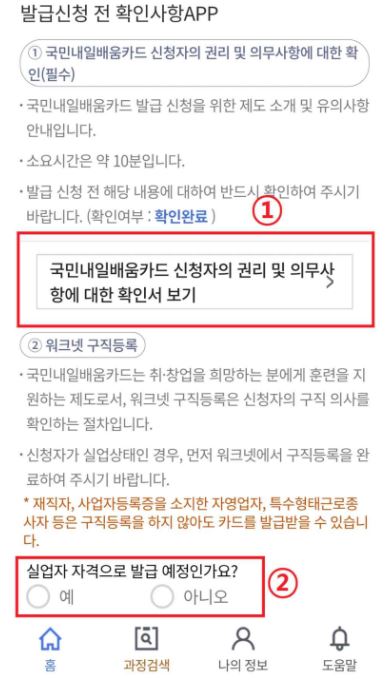• 권리 및 의무사항을 본 후 실업자 여부를 선택합니다.