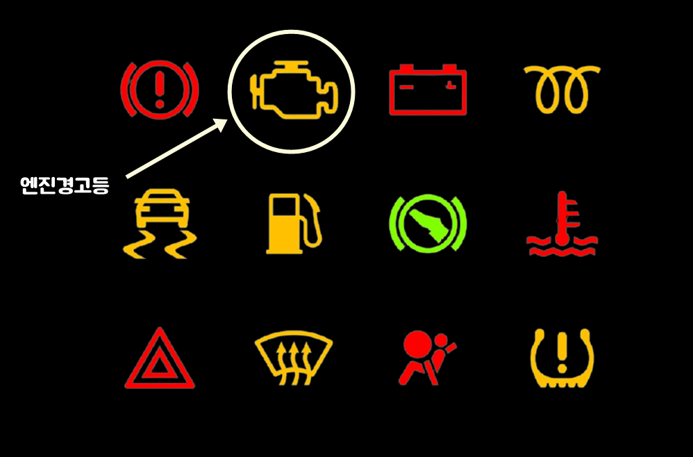 엔진 경고등 해당 등이 계속 들어와 있다면 엔진 제어 장치, 연료 공급 장치 등에 이상이 있는 것으로 보고 가능한 빨리 정비를 받으세요. |