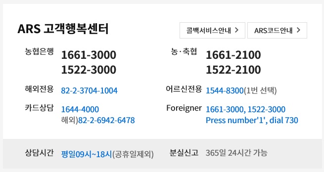 - 농협은행 고객센터 1661 - 3000 / 1522 - 3000