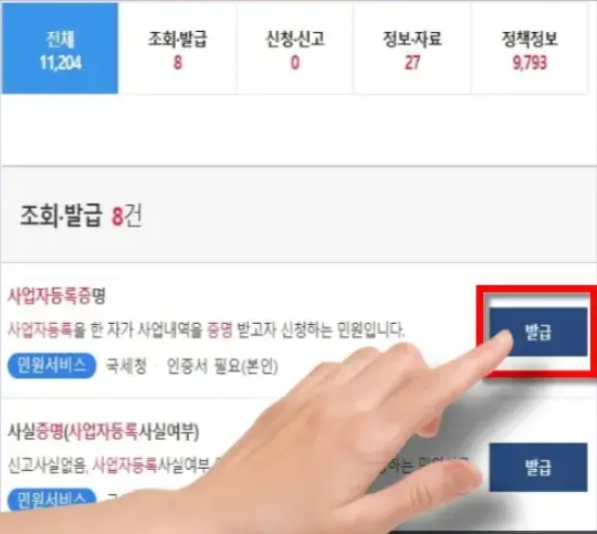 4) 검색에 [사업자등록증명원] 을 검색합니다.