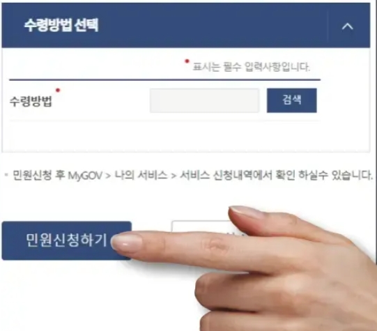 - 민원신청하기 버튼 클릭