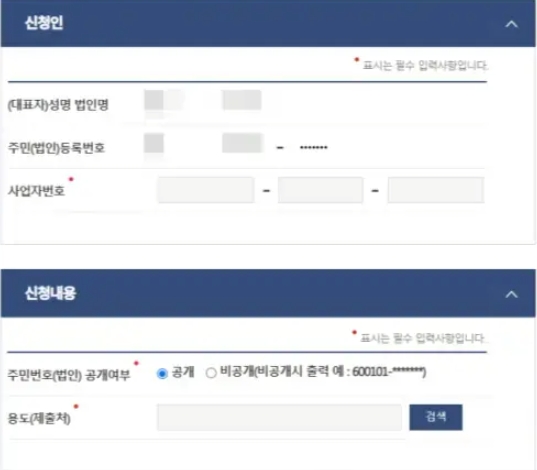 - 주민번호(법인) 공개 여부 선택(공개 / 비공개 중 택일)
