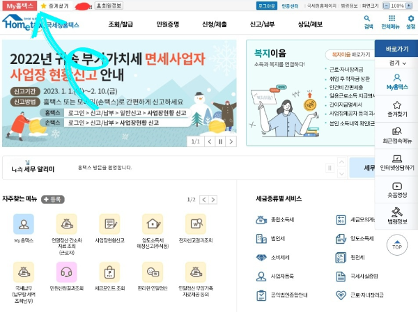 3) 상단에 MY홈택스를 클릭합니다.