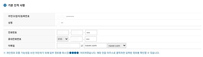 3) 기본인적사항을 확인합니다.