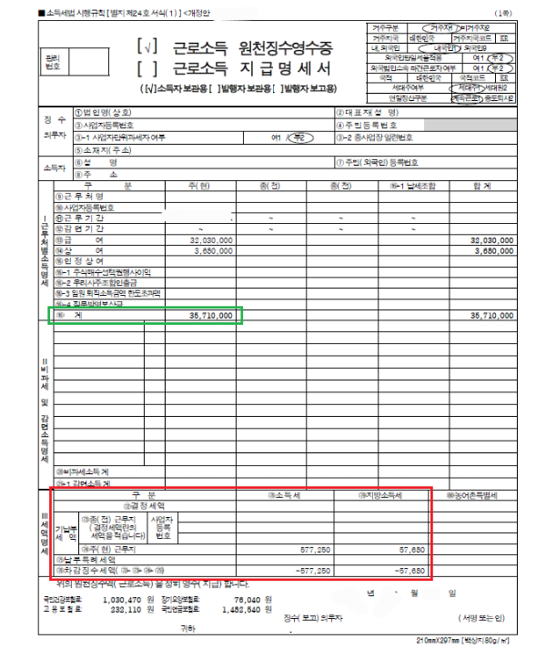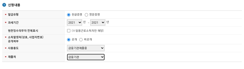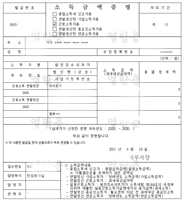 - 전년도 근로소득자용, 연말정산한 사업소득자용, 연말정산한 종교인소득자용, 연말정산한 연금소득자용 소득금액증명
