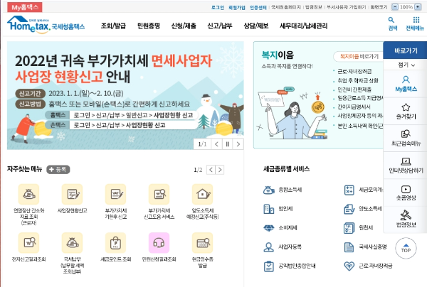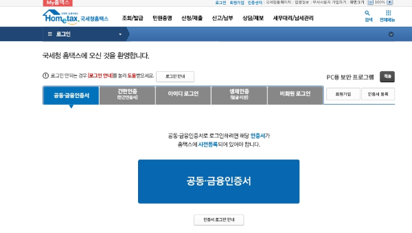 1) 국세청 홈택스 홈페이지에 접속합니다.