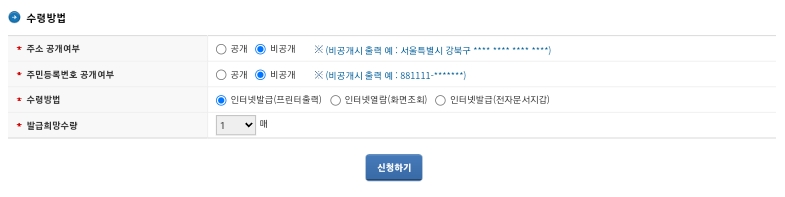 5) 수령방법을 확인 후 [신청하기]를 클릭합니다.