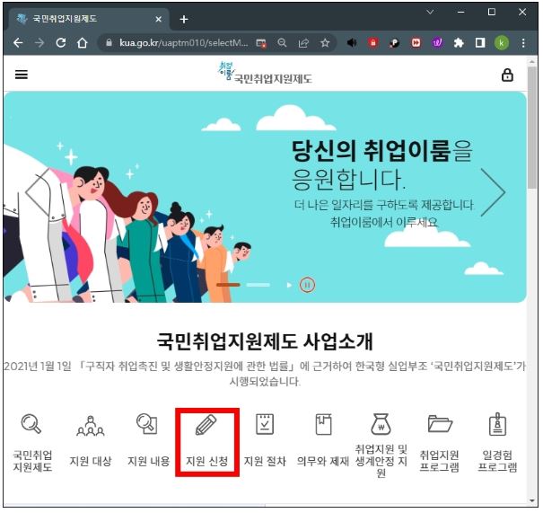 3) 지원신청을 클릭 후 아래에 [취업지원서비스 신청]을 클릭합니다.
