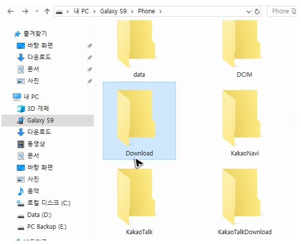 6) 탐색기를 열고 기기 드라이브로 진입한 뒤에 적당한 폴더에 구글 플레이 스토어 다운로드 설치 파일을 넣어주시면 됩니다.