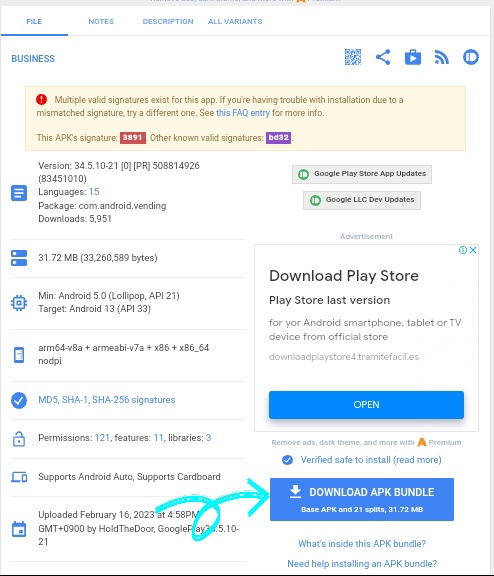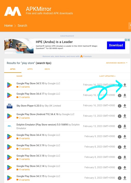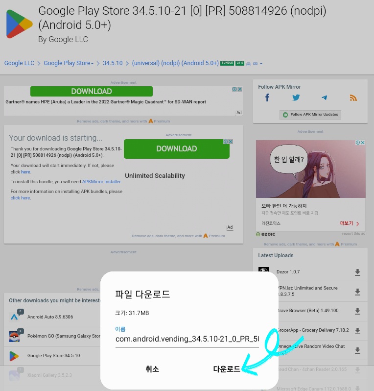 2. apkmirror에서 구글 플레이 스토어 다운로드