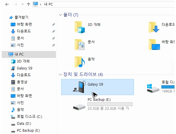 5) 설치파일을 PC에 받으셨으면 핸드폰으로 파일을 옮겨야 하니 기기와 PC를 USB로 연결하고 탐색기를 열어주세요.