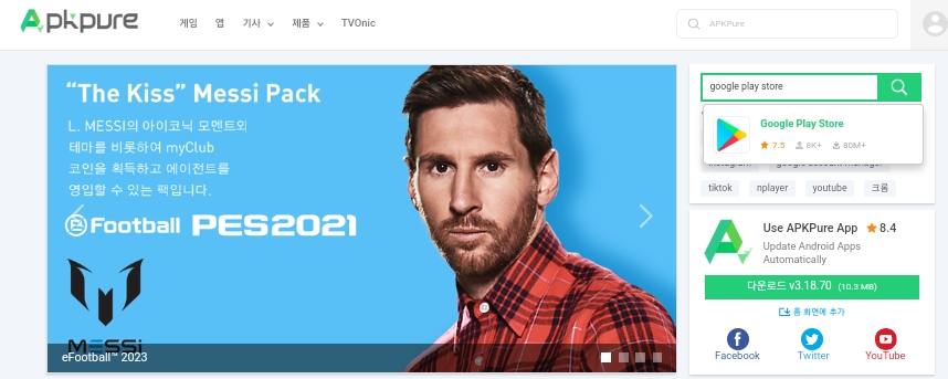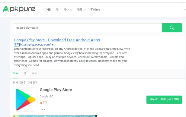 1. apkpure에서 구글 플레이 스토어 다운로드
