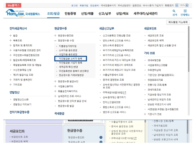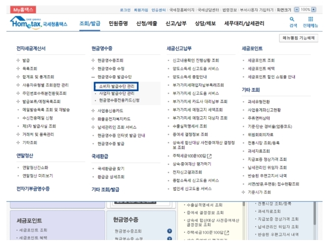 깜빡한 현금영수증 홈택스에서 발급받는 방법