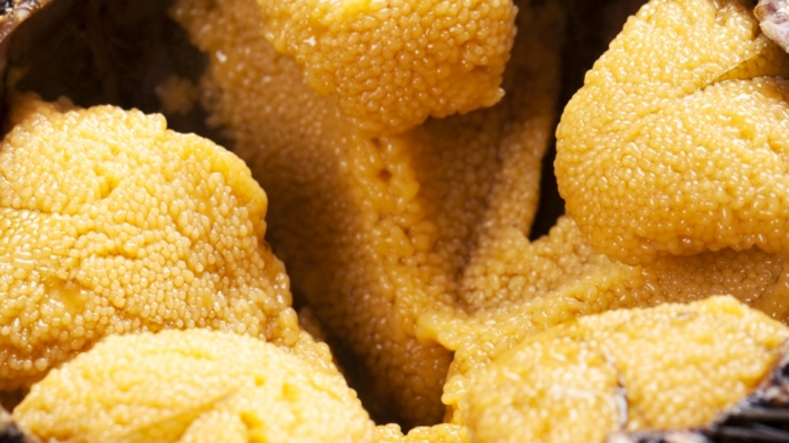성게는 까만 몸에 가시가 달려 있는데, 가시에는 독성이 있어 찔리면 살이 부어오르고 통증이 발생하기 때문에 조심해서 다루어야 합니다. 성게는 주로 성게알을 먹는데…. 성게알이라고 부르기는 하지만 정확하게는 성게의 알이 아니라 생식선입니다. 다 자란 성게 배를 가르면 황갈색 생식선이 가득 차 있어서, 바닷물로 씻으면 탱글탱글해지고 맛도 좋아지지만, 민물에는 씻지 말아야 합니다.