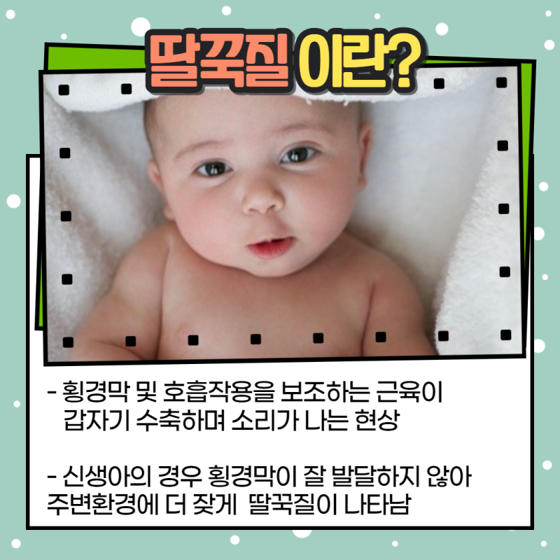 자신의 의지와 상관없이 발생하는 딸꾹질은 가슴과 배의 경계에 있는 횡격막과 갈비뼈 사이의 근육이 반복적으로 수축하면서 숨을 쉬려고 할 때 성대가 닫히면서 발생합니다. 특히 오랫동안 지속하는 딸꾹질은 기저 질환의 증상일 수 있으며, 폐 또는 뇌 장애가 있는 경우 횡격막 기능을 방해하고 딸꾹질을 유발하는 때도 있으며 수술이나 복용 중인 약물의 부작용으로 나타날 수도 있습니다.