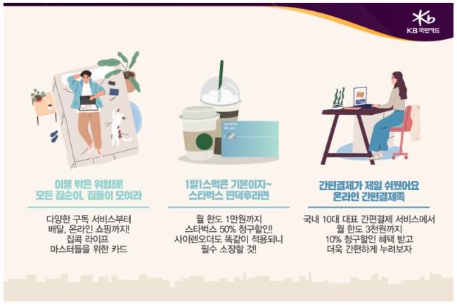 집에서 잘 나오지 않는 집순이, 집돌이라면 필수 소장해야 할 <KB국민 톡톡 with카드>의 혜택 총정리를 확인하세요.