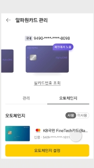 KB Pay > 알파원카드 관리 > 알파원 오토체인지 관리