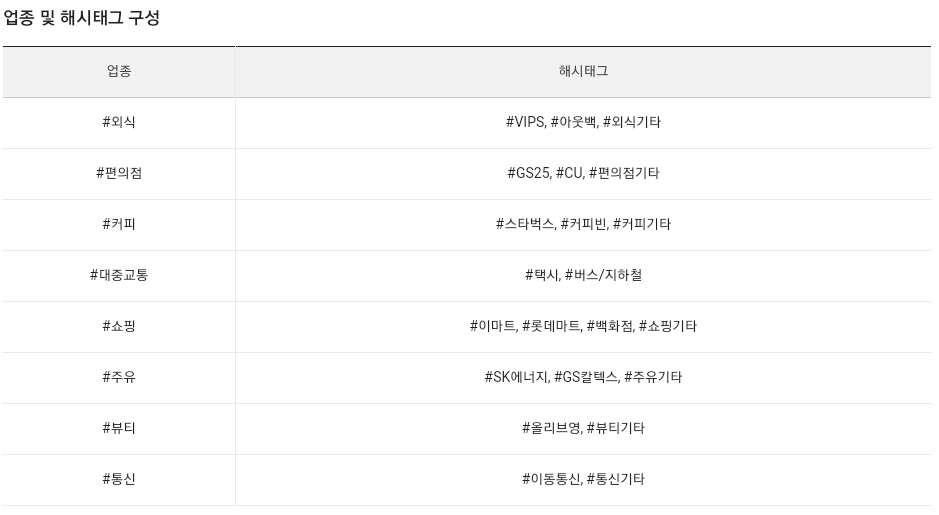 3) 단, 업종으로 분류되는 외식업종, 쇼핑업종 등의 업종 해시태그의 경우 사전 설정한 결제카드로 승인됩니다.