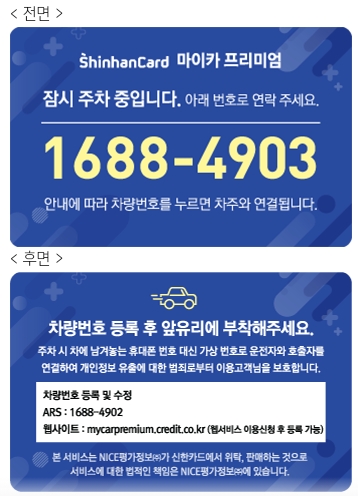 - 주차 시 대표번호 연락판(스티커)에 기재된 가상의 대표번호로 전화가 연결되어 개인정보 유출에 따른 범죄로부터 보호해 드립니다.