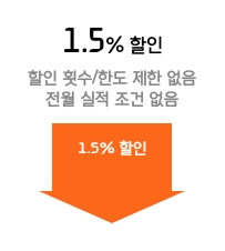 - 할인 횟수 / 한도 제한 없음, 전월 실적 조건 업음
