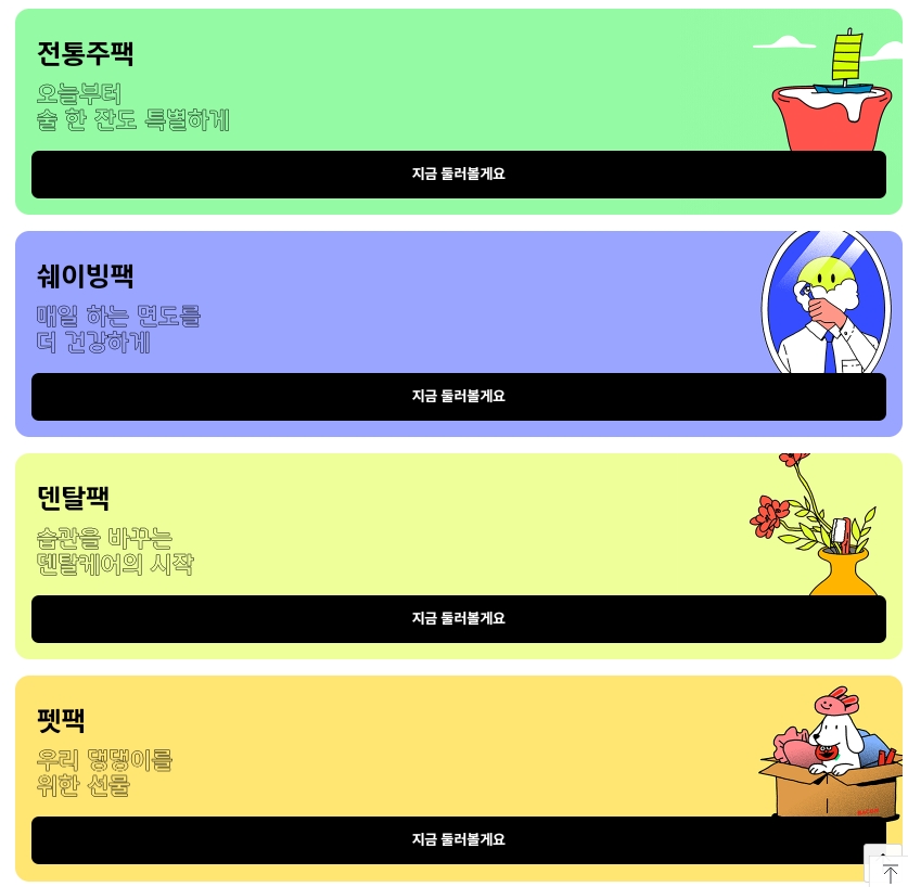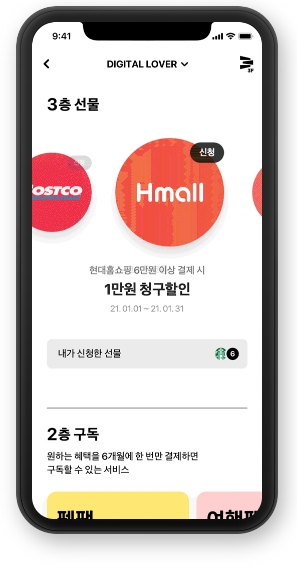 - 취향대로 고르는 핵심 혜택 패키지 정기 구독(원하는 혜택을 한 번만 결제하면 알아서 챙겨드립니다.)