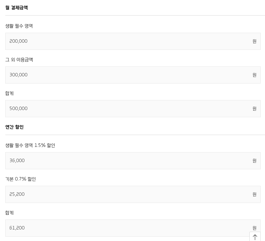 - 생활 필수 영역 할인은 기본 할인과 중복 적용 불가