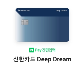 - 신한카드 Deep Dream 최초 발급 시에만 1회에 한해(가족카드 통합) 지급되며, 이후 갱신/제휴카드 발급 시에는 중복 제공되지 않습니다.
