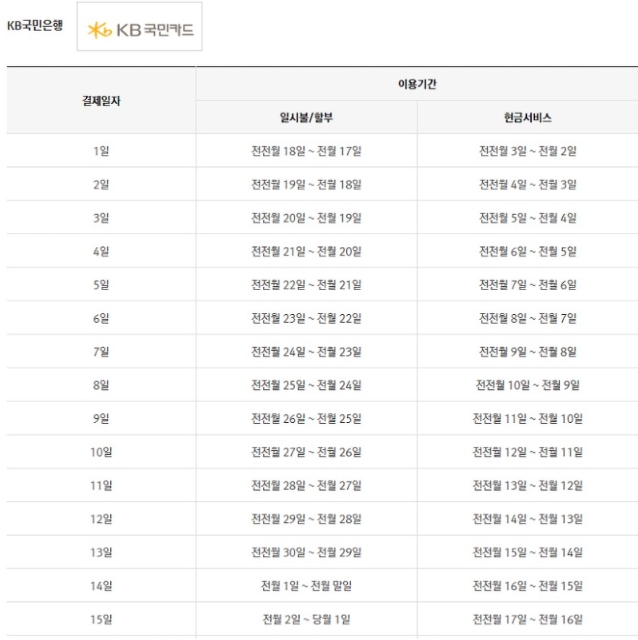 국민카드 결제일별 사용기간 및 결제일 변경방법 알아보기