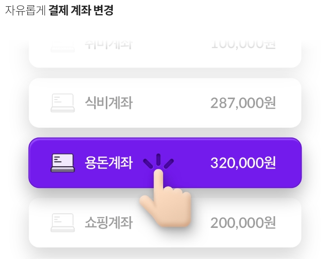 • 말 그대로 자유로운 결제 계좌 변경이 가능합니다.