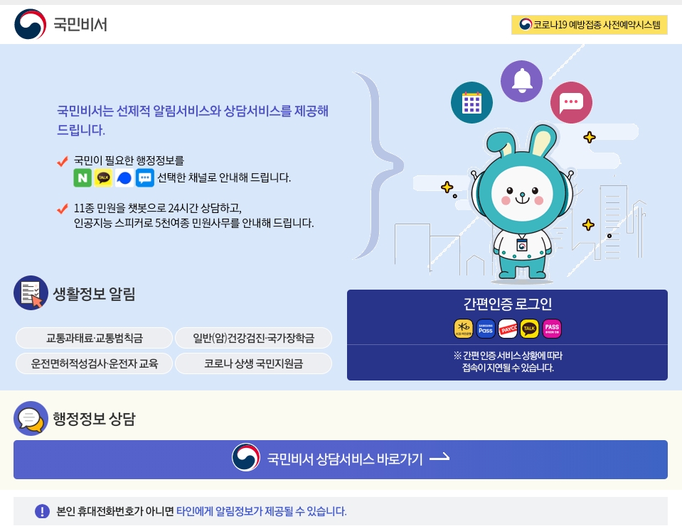 아래 국민비서 홈페이지에서 알림서비스를 신청하세요.