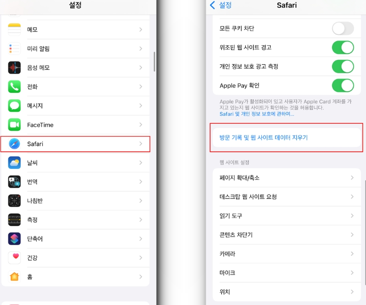 아이폰 방문기록 및 웹 사이트 데이터 지우기